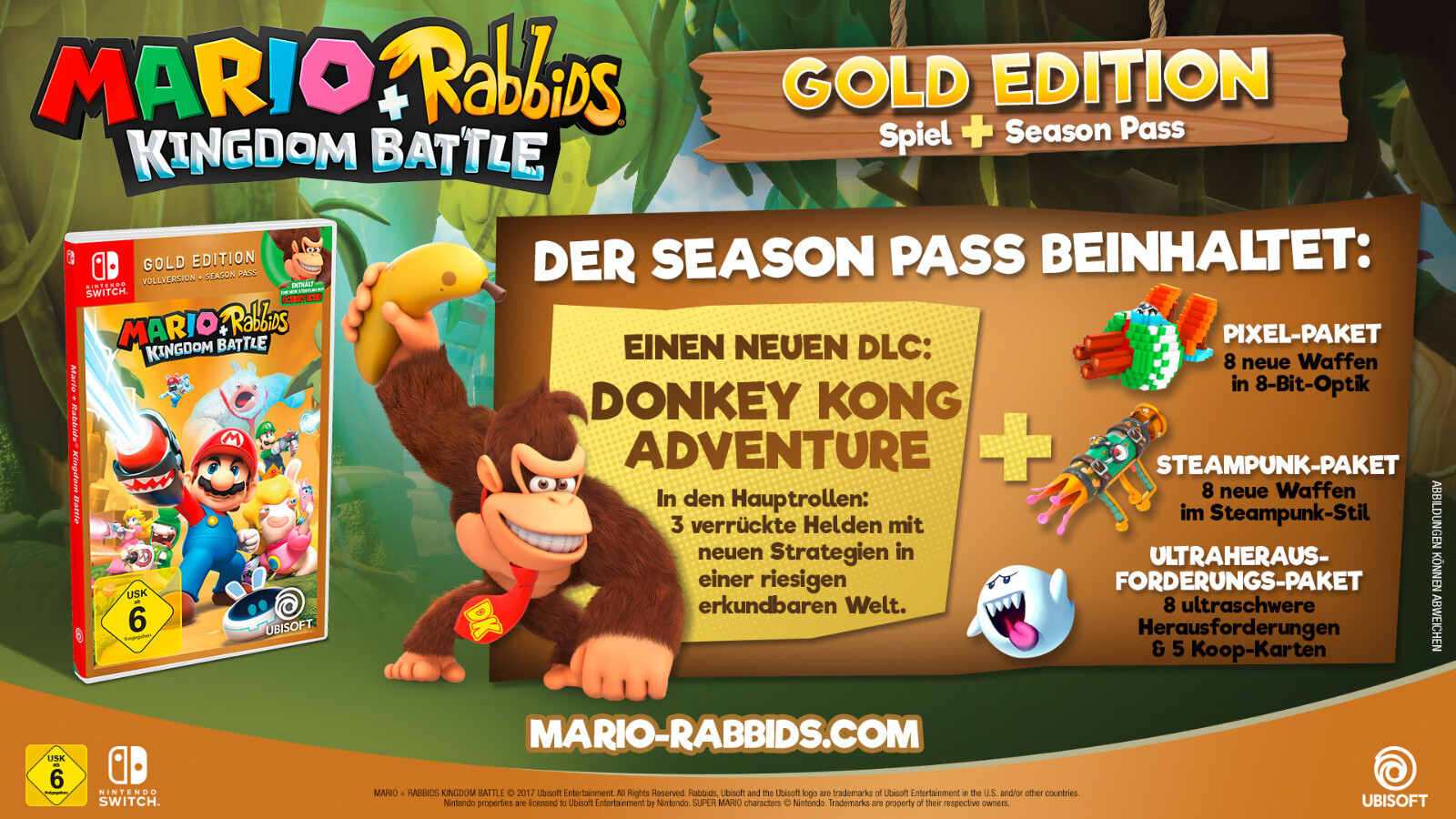 Entdecke die Mario + Rabbids Kingdom Battle Gold Edition, die ultimative Version des Spiels!